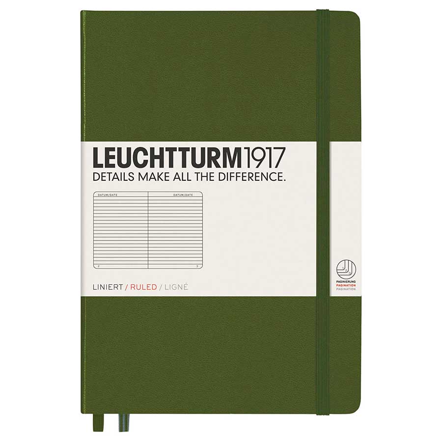 Cuaderno Leuchtturm1917 Medium, tapa dura, tamaño A5, color Army con rayas