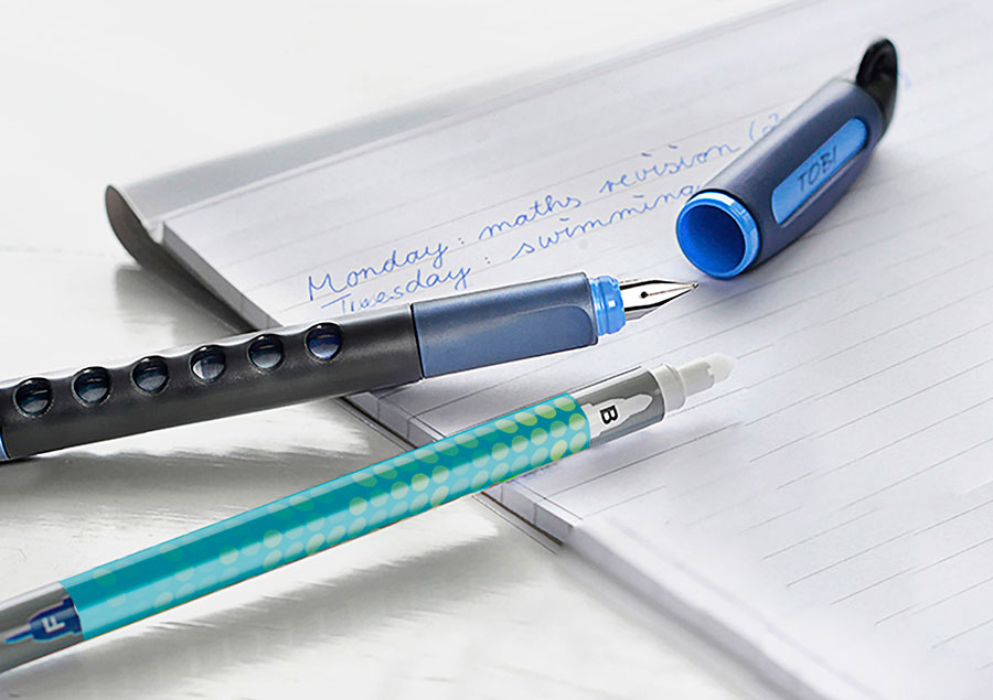 Pluma estilográfica escolar Scribolino para diestros; Plumín con punta de iridio para una escritura fluida aplicando presión - Ideal para quienes empiezan a escribir; Pieza de agarre ergonómica suave para facilitar la sujeción con tres dedos